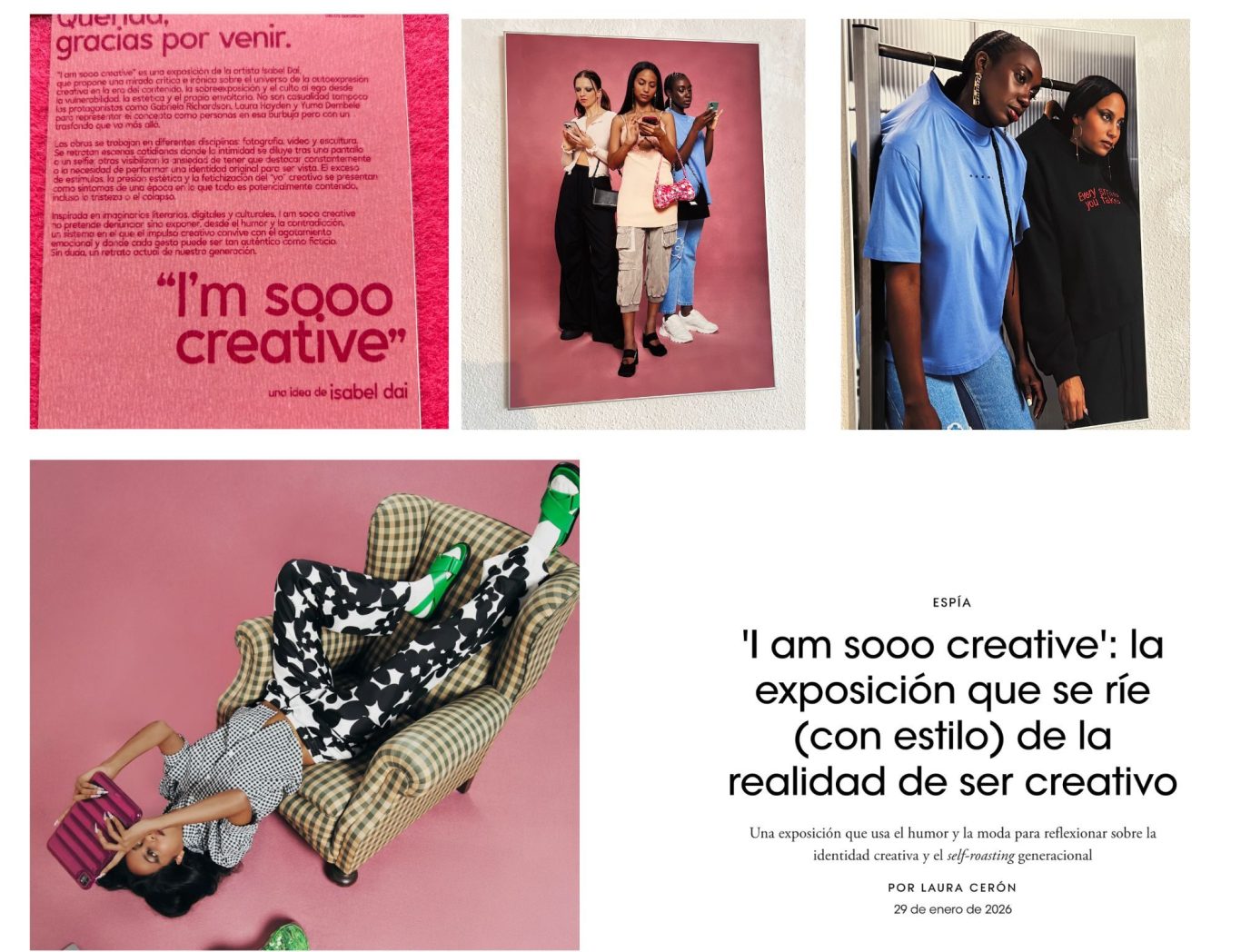 Project: I am sooo creative – Art Exhibition Creative Direction: Isabel Dai Talent: Gabriela Richardson, Laura Hayden & Yuma Dembele Press: Featured in VOGUE Spain Photography & Direction: bycontrast Filmmaker: Nerea Figueras Makeup: Gemma Benedet